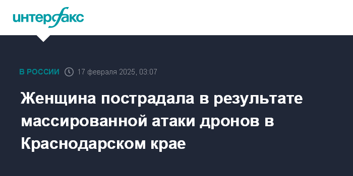 Женщина пострадала в результате массированной атаки дронов в Краснодарском крае