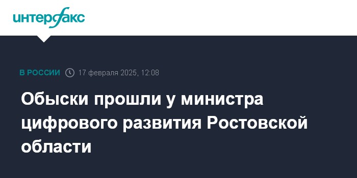 В правоохранительных органах региона "Интерфаксу" уточнили, что обыски прошли у министра цифрового развития, информационных технологий и связи Ростовской области Евгения Полуянова, а также у двух его заместителей - Кирилла Дьячкина и Сергея Бондаренко.