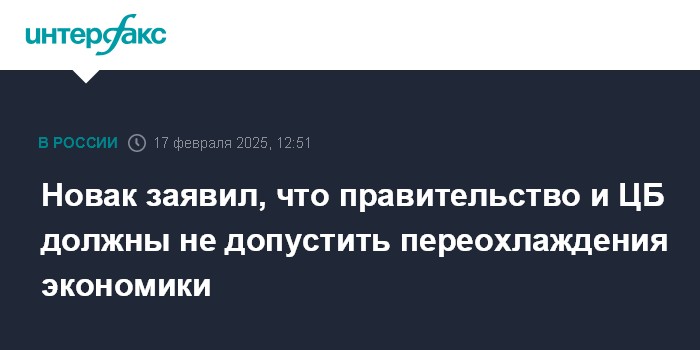 Новак заявил, что правительство и ЦБ должны не допустить переохлаждения экономики