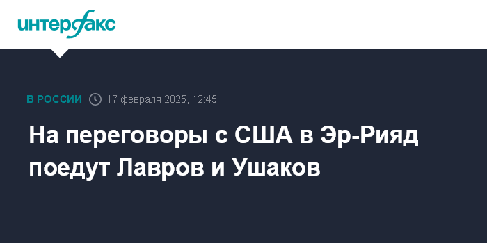 На переговоры с США в Эр-Рияд поедут Лавров и Ушаков