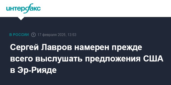 Москва. 17 февраля. INTERFAX.RU - Глава МИД России Сергей Лавров подтвердил, что направляется в Эр-Рияд на переговоры с представителями США.