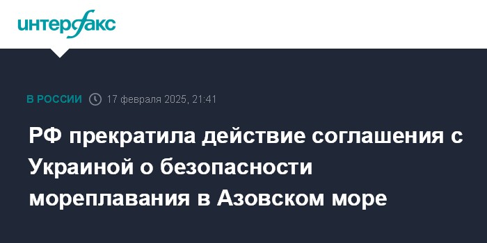 РФ прекратила действие соглашения с Украиной о безопасности мореплавания в Азовском море