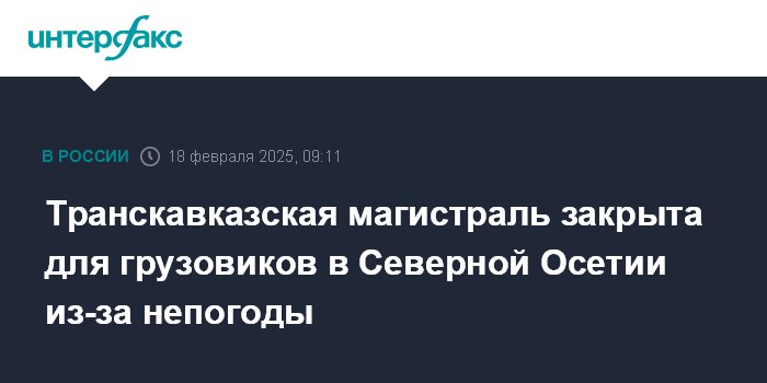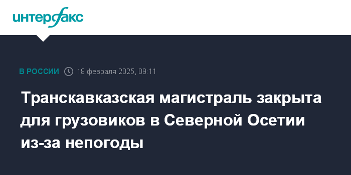 "В связи с ухудшением погодных условий, невозможностью обеспечения безопасного проезда автотранспортных средств по Транскавказской автомагистрали (...) запрещено движение большегрузных автотранспортных средств на участке "населенный пункт Бурон - Северный Портал Рокского тоннеля" в обоих направлениях с 21:00 о московскому времении понедельника", - говорится в сообщении.