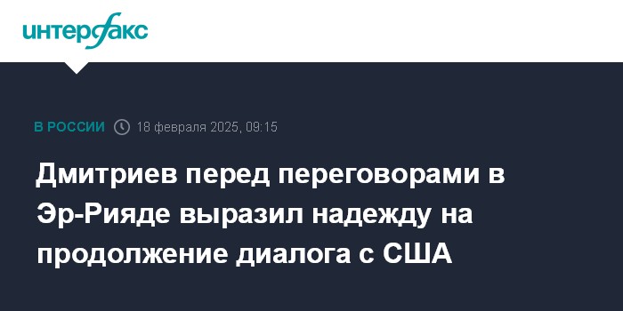 Дмитриев перед переговорами в Эр-Рияде выразил надежду на продолжение диалога с США