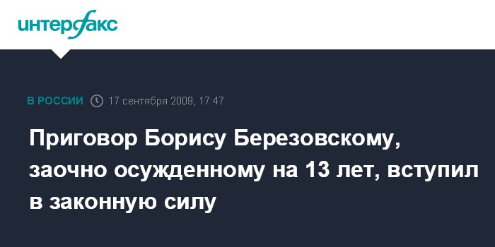 Приговор Борису Березовскому, заочно осужденному на 13 лет, вступил в законную силу