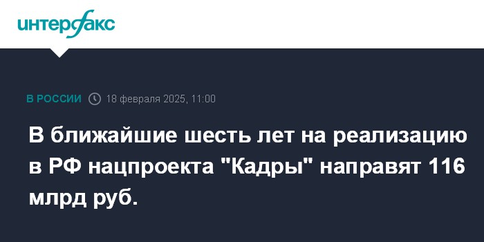 В ближайшие шесть лет на реализацию в РФ нацпроекта "Кадры" направят 116 млрд руб.