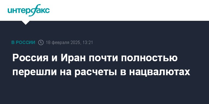 Москва. 18 февраля. INTERFAX.RU - Россия и Иран почти полностью перешли на расчеты в национальных валютах во взаимной торговле, заявил вице-премьер Алексей Оверчук, выступая на III Каспийском экономическом форуме в Тегеране.