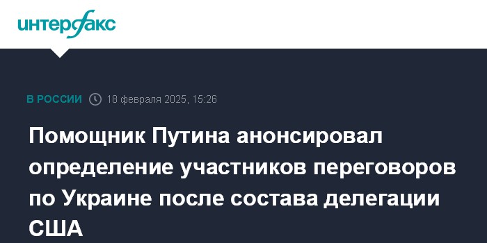 Москва. 18 февраля. INTERFAX.RU - Президент РФ Владимир Путин определит, кто от России будет участвовать в переговорах с США по Украине, когда Вашингтон объявит состав своей делегации, заявил его помощник Юрий Ушаков.