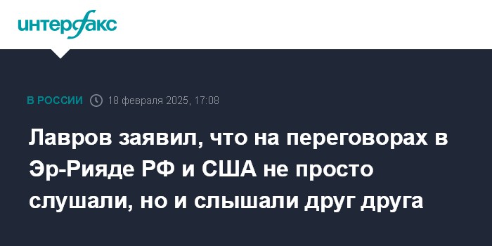 Москва. 18 февраля. INTERFAX.RU - Разговор с представителями США в Эр-Рияде получился полезным, сторонам удалось не только слушать, но и слышать друг друга, заявил глава МИД РФ Сергей Лавров.