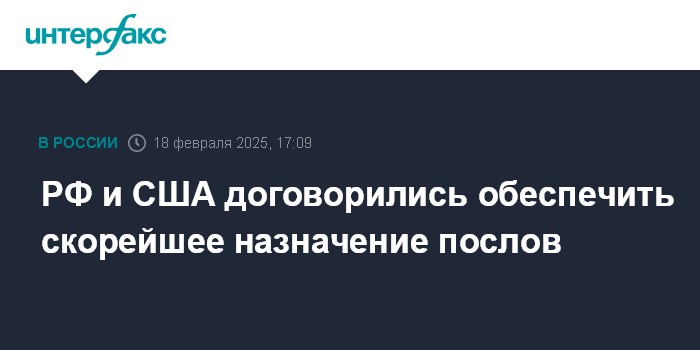 Москва. 18 февраля. INTERFAX.RU - Россия и США договорились обеспечить скорейшее назначение послов двух стран, заявил глава МИД РФ Сергей Лавров.