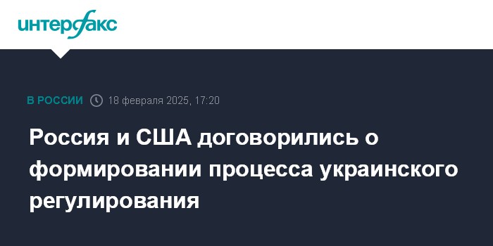 Москва. 18 февраля. INTERFAX.RU - Россия и США согласовали, что в ближайшее время будет запущен процесс украинского урегулирования, заявил на пресс-конференции после переговоров в Эр-Рияде глава МИД России Сергей Лавров.