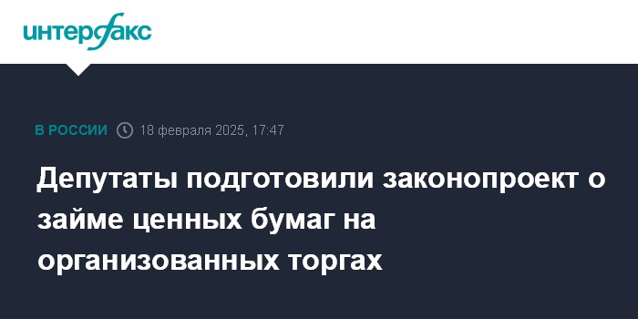 Москва. 18 февраля. INTERFAX.RU - Комитет Госдумы по финансовому рынку подготовил законопроект, который разрешает заключение договоров займа ценных бумаг с квалифицированным центральным контрагентом (КЦК) на организованных торгах.