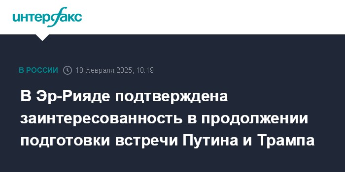 В Эр-Рияде подтверждена заинтересованность в продолжении подготовки встречи Путина и Трампа