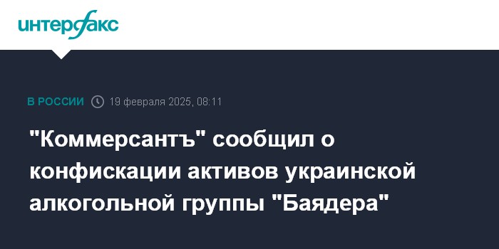 "Коммерсантъ" сообщил о конфискации активов украинской алкогольной группы "Баядера"