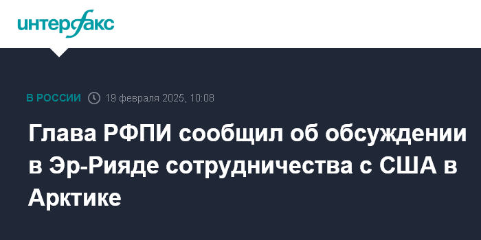 Москва. 19 февраля. INTERFAX.RU - Гендиректор Российского фонда прямых инвестиций (РФПИ) Кирилл Дмитриев заявил, что представители России и США на встрече в Саудовской Аравии обсуждали, в частности, возможность совместных проектов в Арктике.
