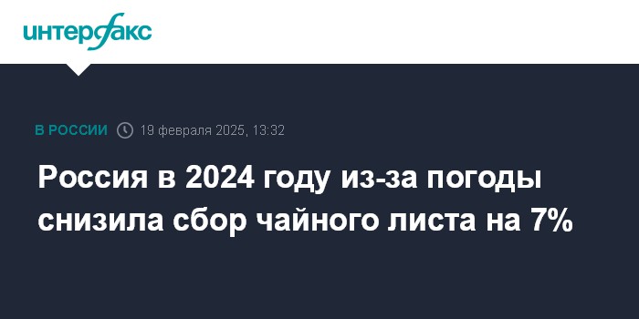 Россия в 2024 году из-за погоды снизила сбор чайного листа на 7%