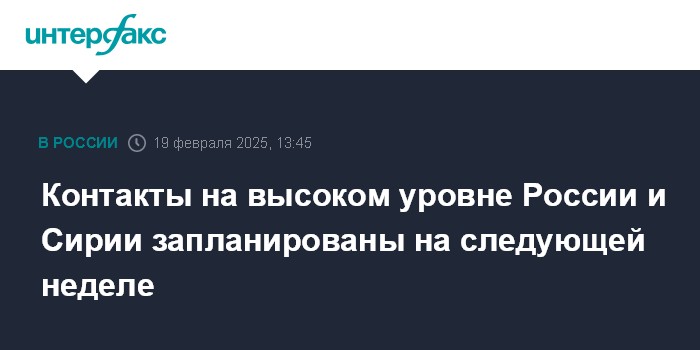 Контакты на высоком уровне России и Сирии запланированы на следующей неделе