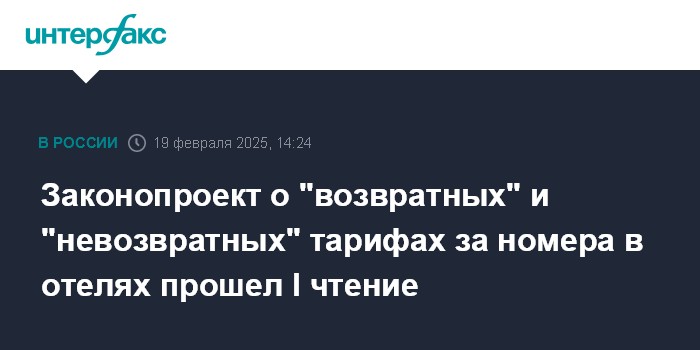 Законопроект о "возвратных" и "невозвратных" тарифах за номера в отелях прошел I чтение