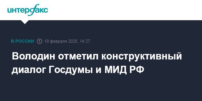 Володин отметил конструктивный диалог Госдумы и МИД РФ