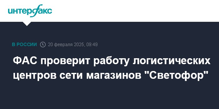 Москва. 20 февраля. INTERFAX.RU - Федеральная антимонопольная служба (ФАС) РФ направила в региональные управления поручения проверить деятельность логистических центров сети магазинов "Светофор" на предмет соблюдения требований закона о торговле. Об этом регулятор сообщил в своем пресс-релизе.