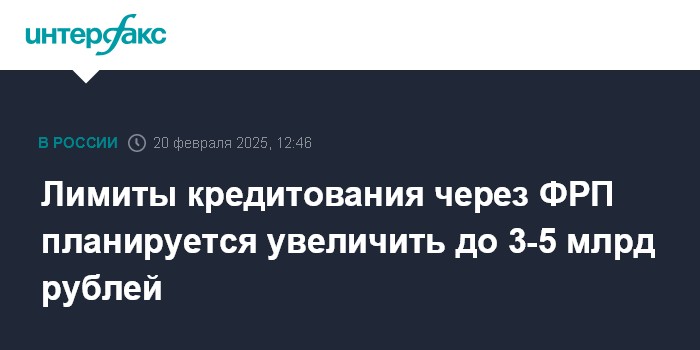 Лимиты кредитования через ФРП планируется увеличить до 3-5 млрд рублей