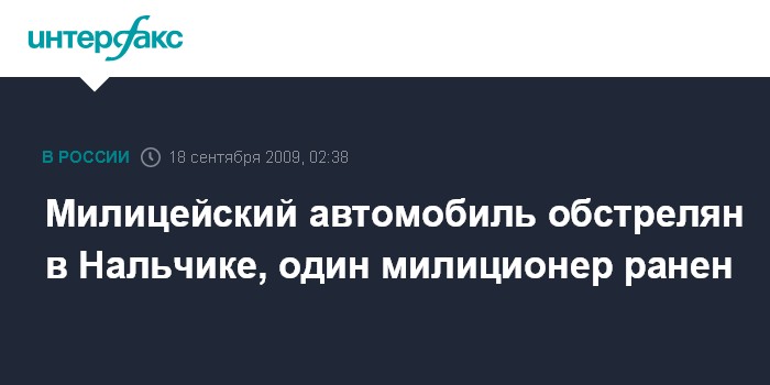 Милицейский автомобиль обстрелян в Нальчике, один милиционер ранен