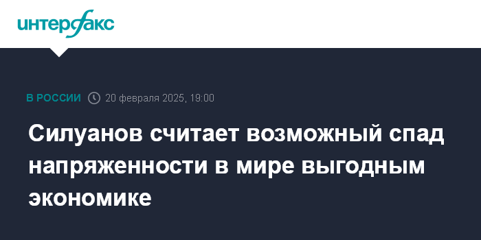 Москва. 20 февраля. INTERFAX.RU - Возможное снижение геополитической напряженности пойдет на пользу и российской экономике, и мировой в целом, считает министр финансов Антон Силуанов.