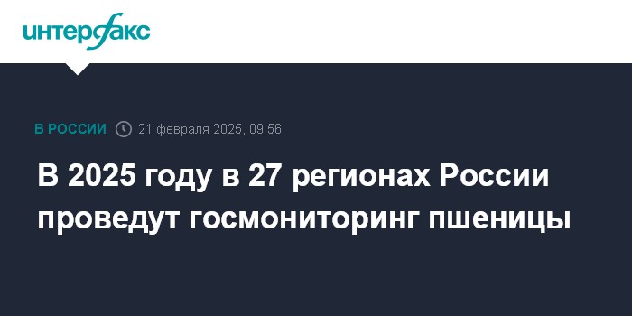 В 2025 году в 27 регионах России проведут госмониторинг пшеницы