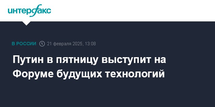 Москва. 21 февраля. INTERFAX.RU - Президент РФ Владимир Путин в пятницу поучаствует в Форуме будущих технологий, осмотрит на его "полях" выставку и заслушает ряд докладов, в том числе от представителей бизнеса, заявил пресс-секретарь главы российского государства Дмитрий Песков.