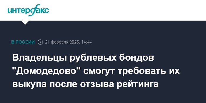 Владельцы рублевых бондов "Домодедово" смогут требовать их выкупа после отзыва рейтинга