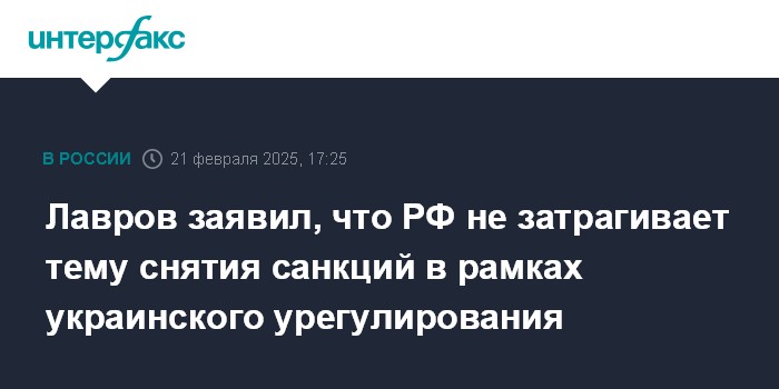 Москва. 21 февраля. INTERFAX.RU - Россия и США не затрагивают тематику возможного смягчения антироссийских санкций в рамках украинского урегулирования, заявил глава МИД РФ Сергей Лавров.