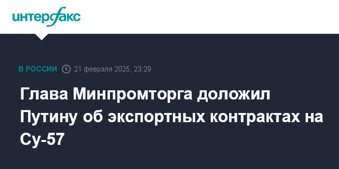 Глава Минпромторга доложил Путину об экспортных контрактах на Су-57