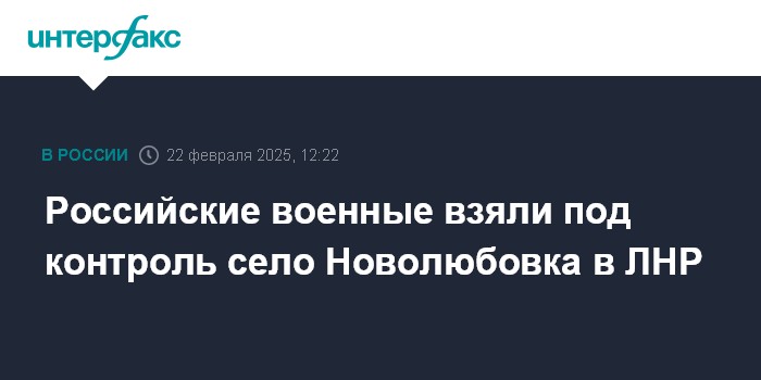 Москва. 22 февраля. INTERFAX.RU - Российская армия взяла под контроль село Новолюбовка в ЛНР, заявило Минобороны РФ в субботу.