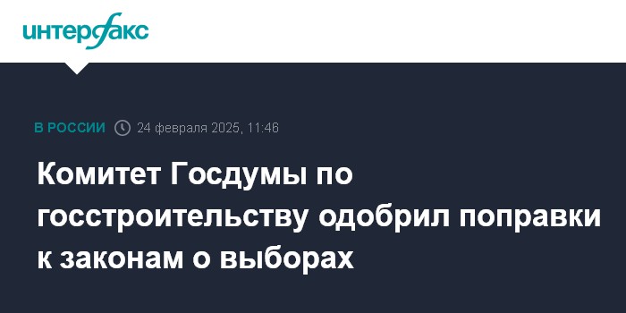 Москва. 24 февраля. INTERFAX.RU - Комитет Госдумы по госстроительству и законодательству рекомендовал принять в первом чтении законопроект № 840518-8 о совершенствовании избирательного законодательства.