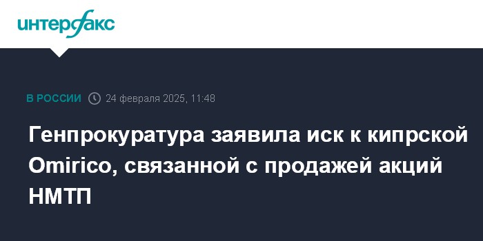 Генпрокуратура заявила иск к кипрской Omirico, связанной с продажей акций НМТП
