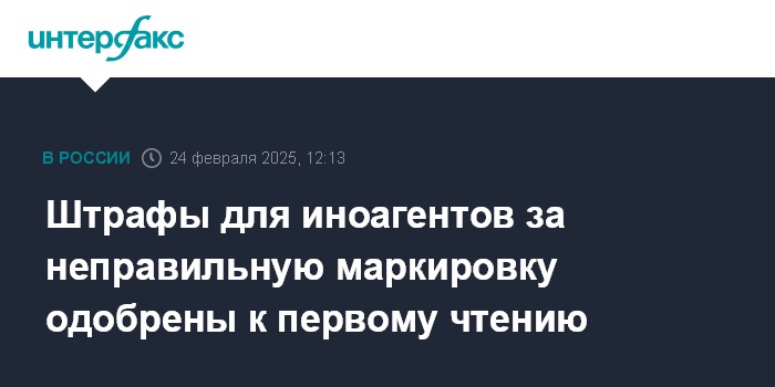 Штрафы для иноагентов за неправильную маркировку одобрены к первому чтению