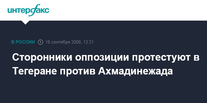 Тегеран. 18 сентября. INTERFAX.RU - Несколько десятков тысяч сторонников иранской оппозиции собрались в пятницу в центре Тегерана, чтобы выразить протест против президента страны Махмуда Ахмадинежада.