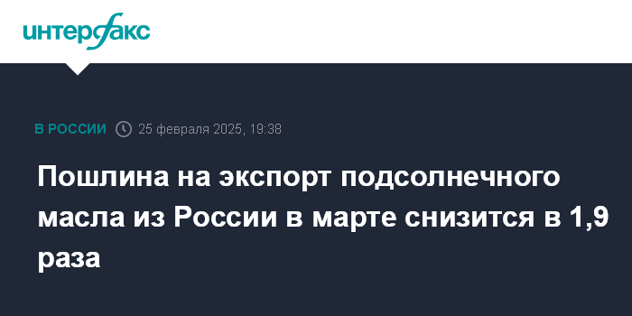 Пошлина на экспорт подсолнечного масла из России в марте снизится в 1,9 раза