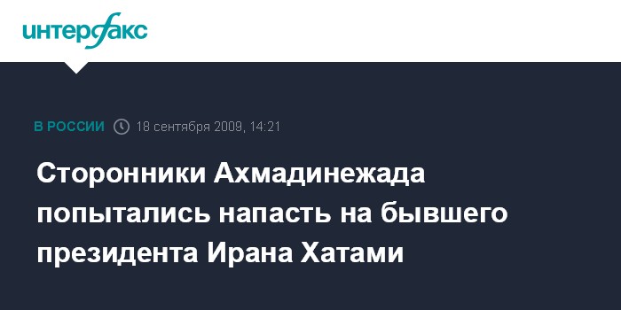 Тегеран. 18 сентября. INTERFAX.RU - Группа сторонников президента Ирана Махмуда Ахмадинежада попыталась в пятницу напасть на одного из главных лидеров оппозиции, бывшего президента Мохаммада Хатами.