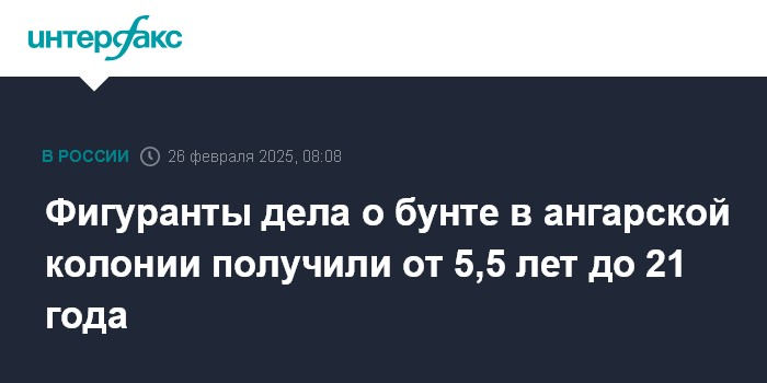 Москва. 26 февраля. INTERFAX.RU - Иркутский областной суд в среду признал 12 человек виновными по делу о массовых беспорядках и дезорганизации деятельности колонии №15 в Ангарске весной 2020 года, сообщила прокуратура региона.