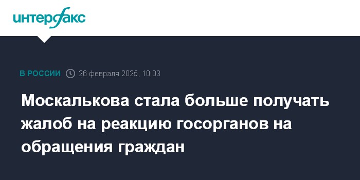 Москалькова стала больше получать жалоб на реакцию госорганов на обращения граждан