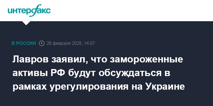 Москва. 26 февраля. INTERFAX.RU - Вопрос использования замороженных на Западе российских активов пока конкретно не обсуждался, но эта тема будет фигурировать в рамках урегулирования украинского кризиса, заявил глава МИД РФ Сергей Лавров.