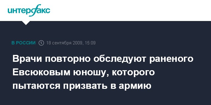 Москва. 18 сентября. INTERFAX.RU - Пострадавшему от действий майора милиции Дениса Евсюкова, призванному в армию, будет проведено повторное медицинское обследование.
