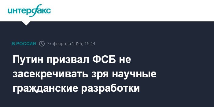 Путин призвал ФСБ не засекречивать зря научные гражданские разработки