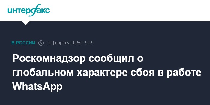 Москва. 28 февраля. INTERFAX.RU - Специалисты Центра мониторинга и управления сетью связи общего пользования Роскомнадзора фиксируют глобальный сбой в работе мессенджера WhatsApp, сообщила "Интерфаксу" пресс-служба ведомства.