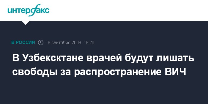 Ташкент. 18 сентября. INTERFAX.RU - В Узбекистане введут уголовную ответственность за заражение ВИЧ-инфекцией из-за ненадлежащего исполнения врачами профессиональных обязанностей.