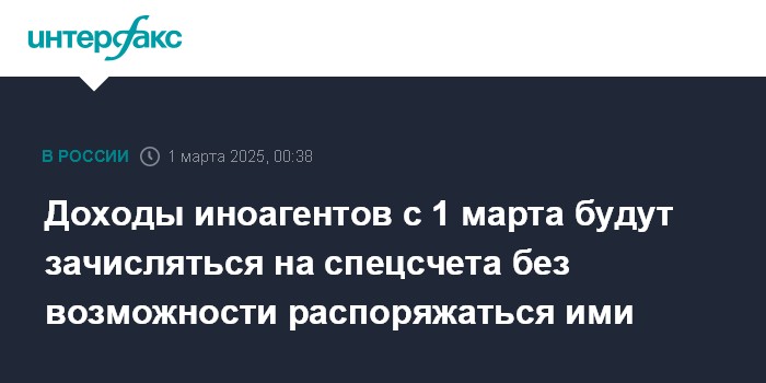 Москва. 1 марта. INTERFAX.RU - Первого марта вступает в силу закон о специальных счетах для иноагентов для авторских отчислений и иных платежей.