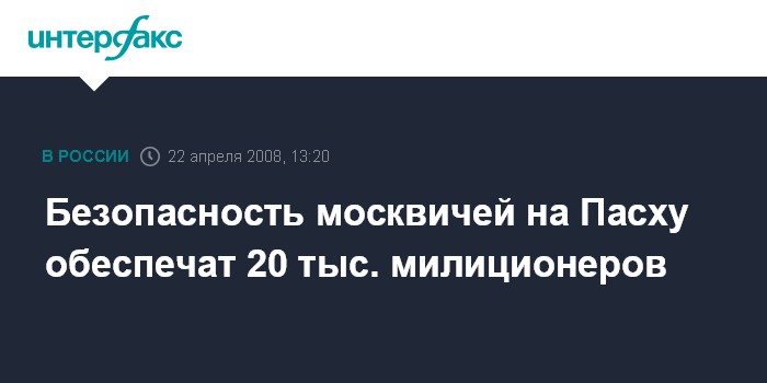 Москва. 22 апреля. INTERFAX.RU - В Москве к охране общественного порядка и обеспечению безопасности на Пасху, 27 апреля, будет привлечено около 20 тыс. сотрудников милиции, сообщил "Интерфаксу" во вторник руководитель столичного ГУВД Владимир Пронин.