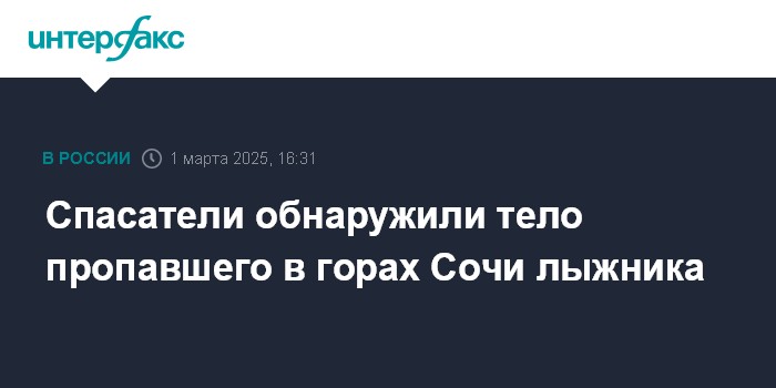 Москва. 1 марта. INTERFAX.RU - Спасатели обнаружили тело лыжника, пропавшего на склоне горы Аибги в Сочи, сообщили "Интерфаксу" в экстренных службах региона.