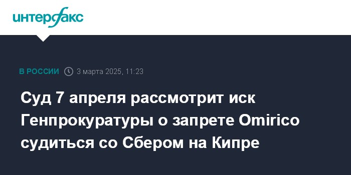 Суд 7 апреля рассмотрит иск Генпрокуратуры о запрете Omirico судиться со Сбером на Кипре